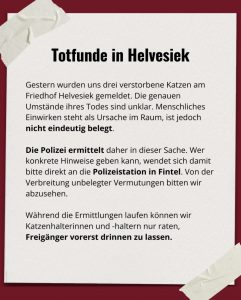 Verbleib der Katze zu entscheiden und entsprechende Maßnahmen einzuleiten.