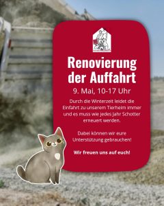 Sie haben ein Tier in Not gefunden oder Sie vermissen Ihr Tier? Der Tierschutzverein Rotenburg e.V. ist für Fundtiere aus dem Bereich der Stadt Rotenburg mit den Gemeinden Unterstedt, Waffensen, Borchel, Mulmshorn, sowie der Samtgemeinde Fintel mit den Gemeinden Vahlde, Stemmen, Helvesiek, Lauenbrück und Fintel, und ab dem 1.01.2026 auch für die Samtgemeinde Zeven mit den Gemeinden Elsdorf, Gyhum, Heeslingen und der Stadt Zeven zuständig. Wir sorgen dafür, dass ausgesetzte und verletzte Tiere schnellstmöglich eine tierärztliche Betreuung und Versorgung erhalten, und das rund um die Uhr – 365 Tage im Jahr.