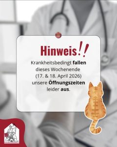 Tiernotruf: 04268 – 94343 (in der Zeit zwischen 19 Uhr und 8 Uhr NUR!! für Notfälle)