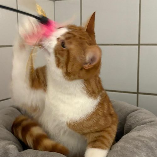 Er ist noch etwas ängstlich, lässt sich aber schon ganz gerne streicheln.