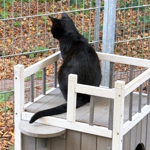Lotta wohnt jetzt im großen Gruppenzimmer, wirkt dort etwas verloren. Neugierig ist sie zwar, wenn Besuch ins Zimmer kommt, aber Ruhe findet sie nicht so richtig. Auch sie würde sich bestimmt wohler fühlen, wenn sie mehr Kontakt zu Menschen haben könnte, die anderen Katzen beachtet sie nicht großartig.