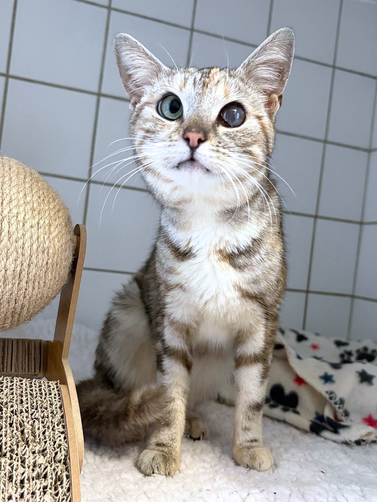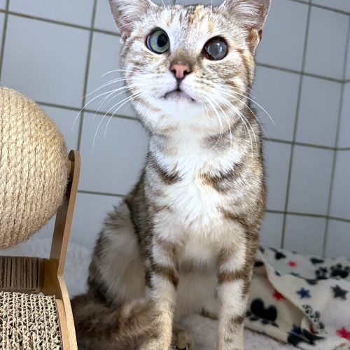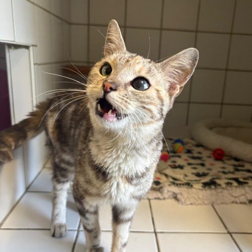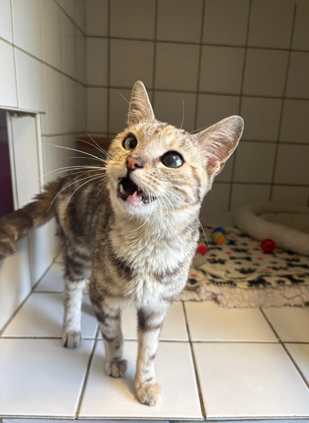 Wie sie in den Keller kam weiß anscheinend niemand. Minka ist sehr freundlich und verschmust, aber auch sehr zierlich, und sie hat ein trübes Auge, das sich die Tierärztin jetzt ansehen muss.