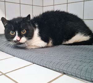 Nelly konnte gegenüber von Veolia gesichert werden, und darf sich jetzt erst einmal aufwärmen und satt futtern. Da sie in einem schlechten Allgemeinzustand ist, und auch ihre Zähne das deutlich machen, lässt sich ihr Alter (noch) nicht genauer schätzen. Auf jeden Fall ist die hübsche Katzendame eine Seniorin, die vermutlich massiv erleichtert sein wird, dass sie plötzlich „einfach so“ ihr Futter serviert bekommt.