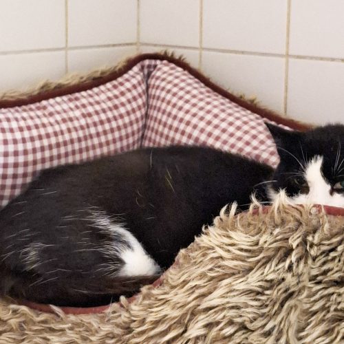 Sie lässt uns derzeit gar nicht an sich heran, sodass wir weder nach einem Chip noch nach dem Geschlecht schauen konnten. Sie darf etwas zur Ruhe kommen, steht im Moment noch massiv unter Stress.