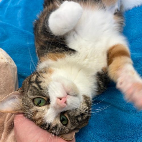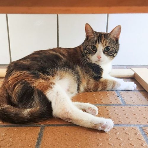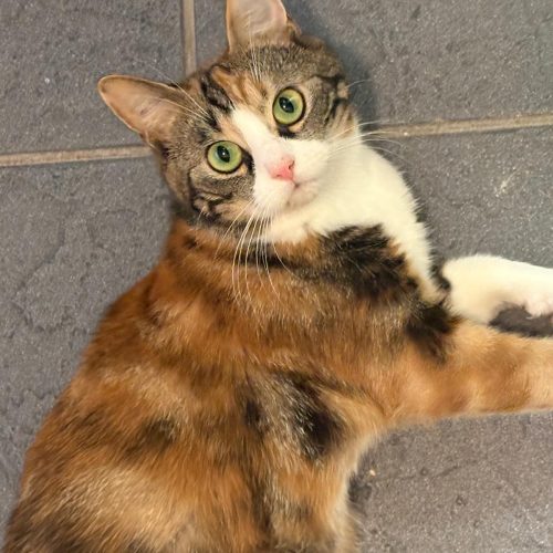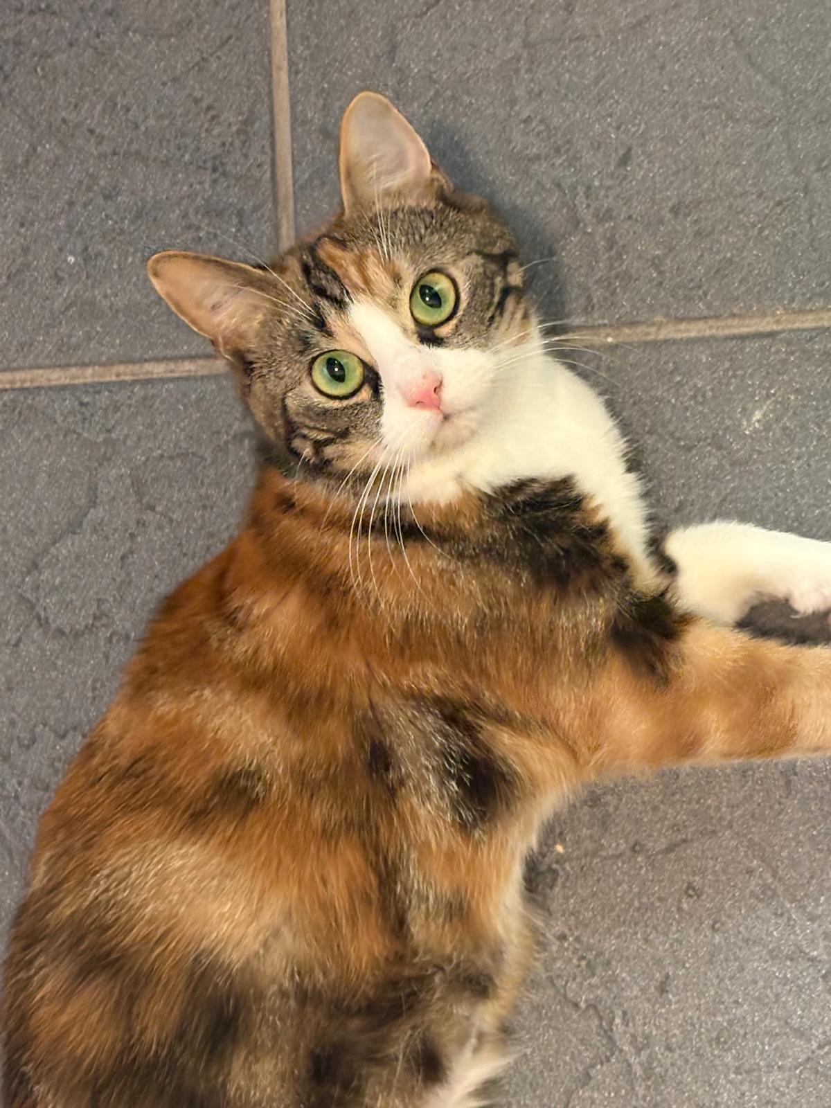 Sie soll sich, zusammen mit vier anderen, schon länger am Fundort aufgehalten haben. Eventuell ist sie tragend. Lässt sich streicheln.
