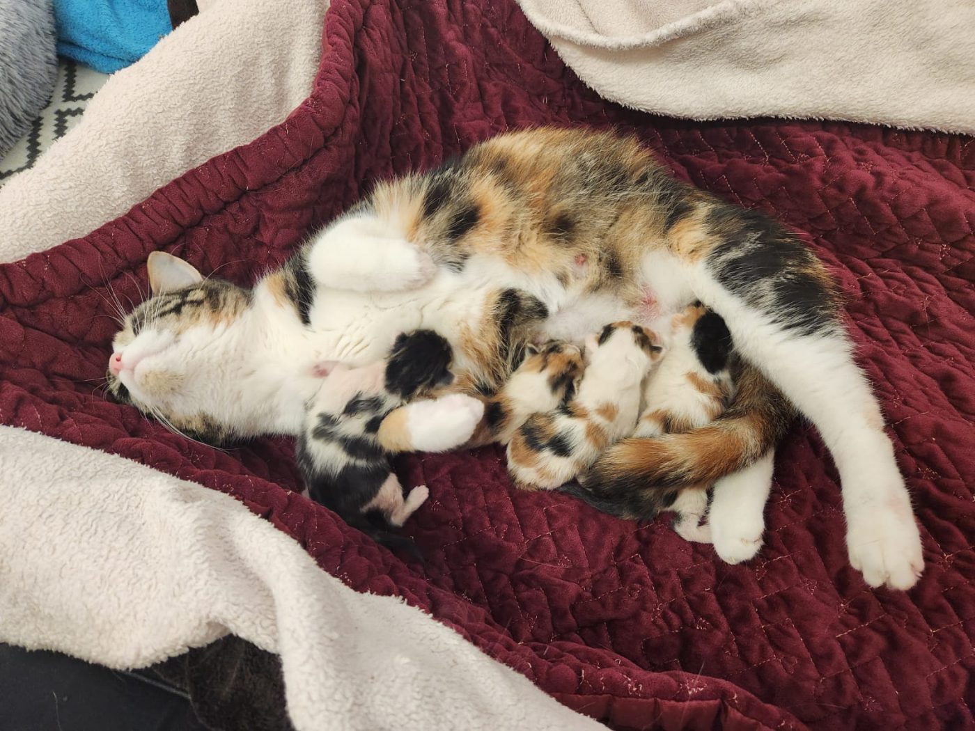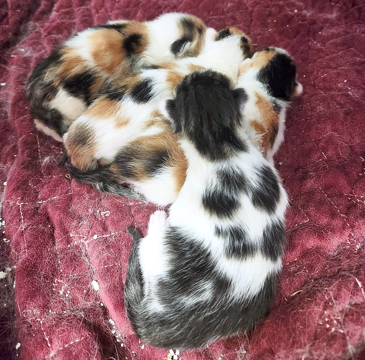 Celly hat in der Nacht auf den 29.03. vier wunderhübsche, und allem Anschein nach, gesunde Mädels auf die Welt gebracht. Allen geht es gut, und Celly sorgt sich ganz tiefenentspannt um ihre bunten Minis. Arielle, Cinderella, Vaiana u. Belle dürfen jetzt Mamas Nähe genießen, solange sie diese brauchen.