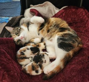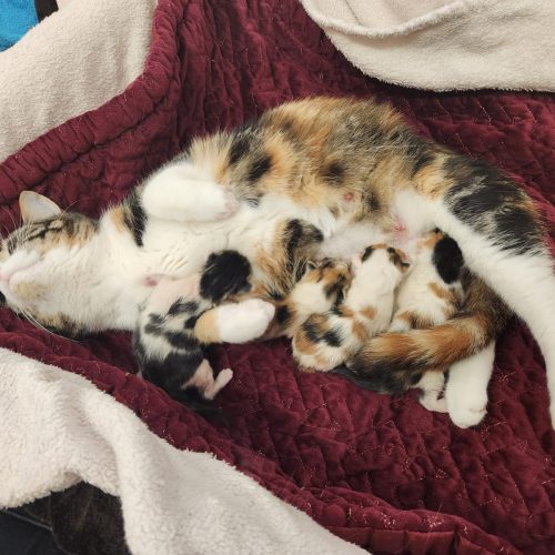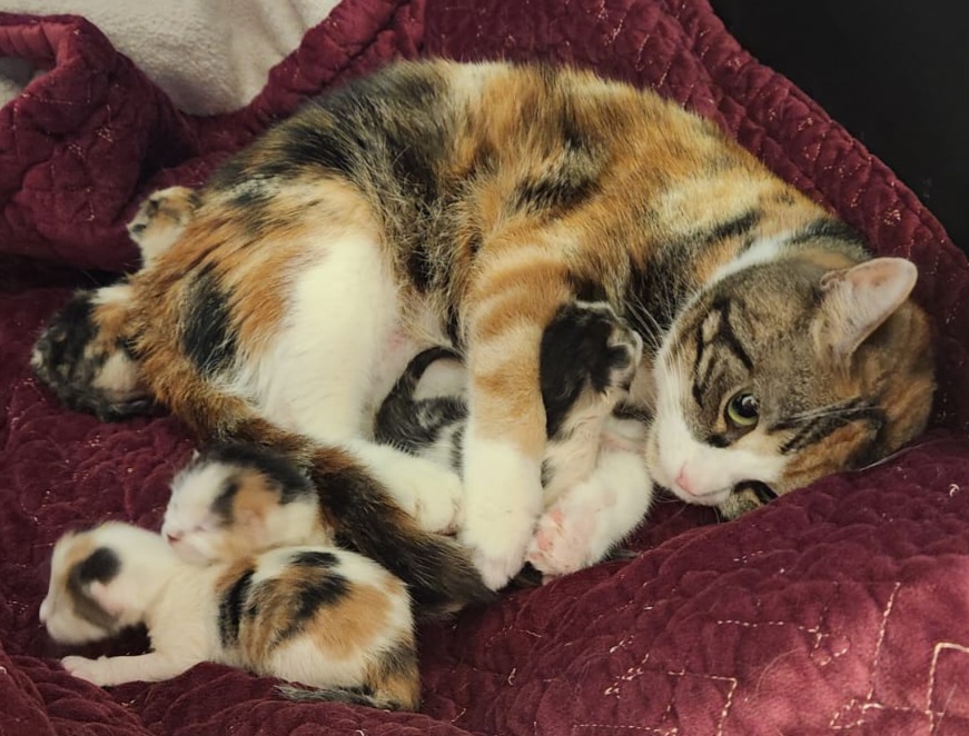 Mama u. Babys sind natürlich vorerst nicht zur Vermittlung frei, und Kitten werden bei uns auch nur zu zweit, oder zu einem vorhandenen Tier im ähnlichen Alter vermittelt.