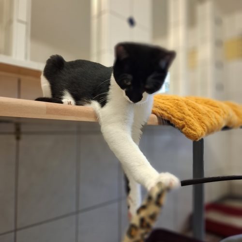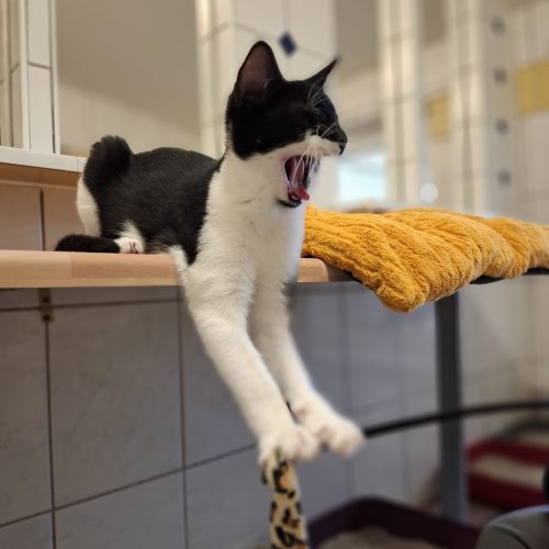 Pak Choi wartet immer noch auf sein Für immer-Zuhause, völlig unverständlich für uns. Er verträgt sich im Gruppenzimmer super mit allen anderen, scheint eine besondere Verbindung mit Nigiri zu haben (die beiden könnten fast Zwillinge sein), ist aufgeschlossen, freundlich, neugierig und natürlich verspielt. Fotos von ihm zu machen ist super einfach, der bildhübsche Kater ist das perfekte Samtpfotenmodell.