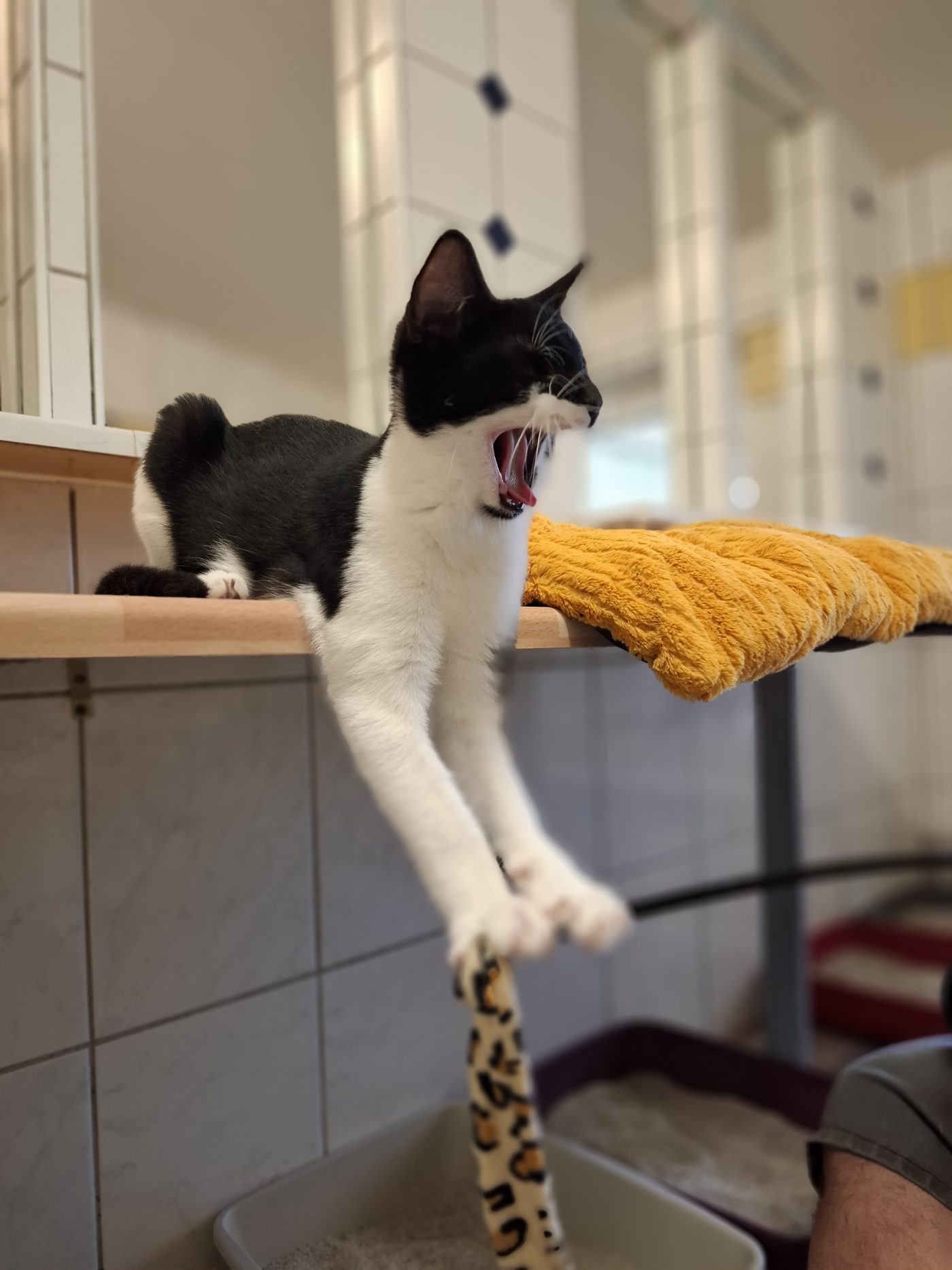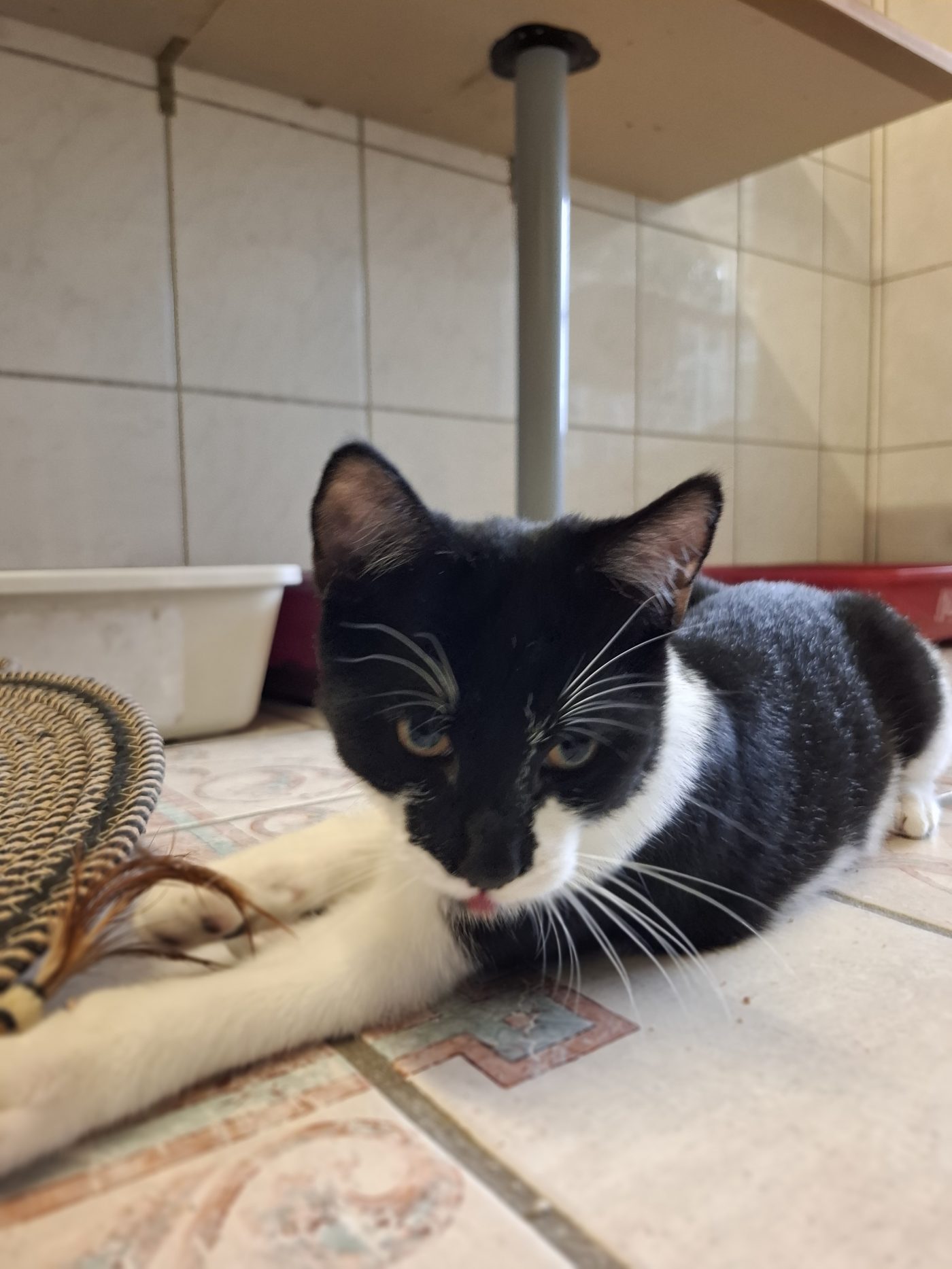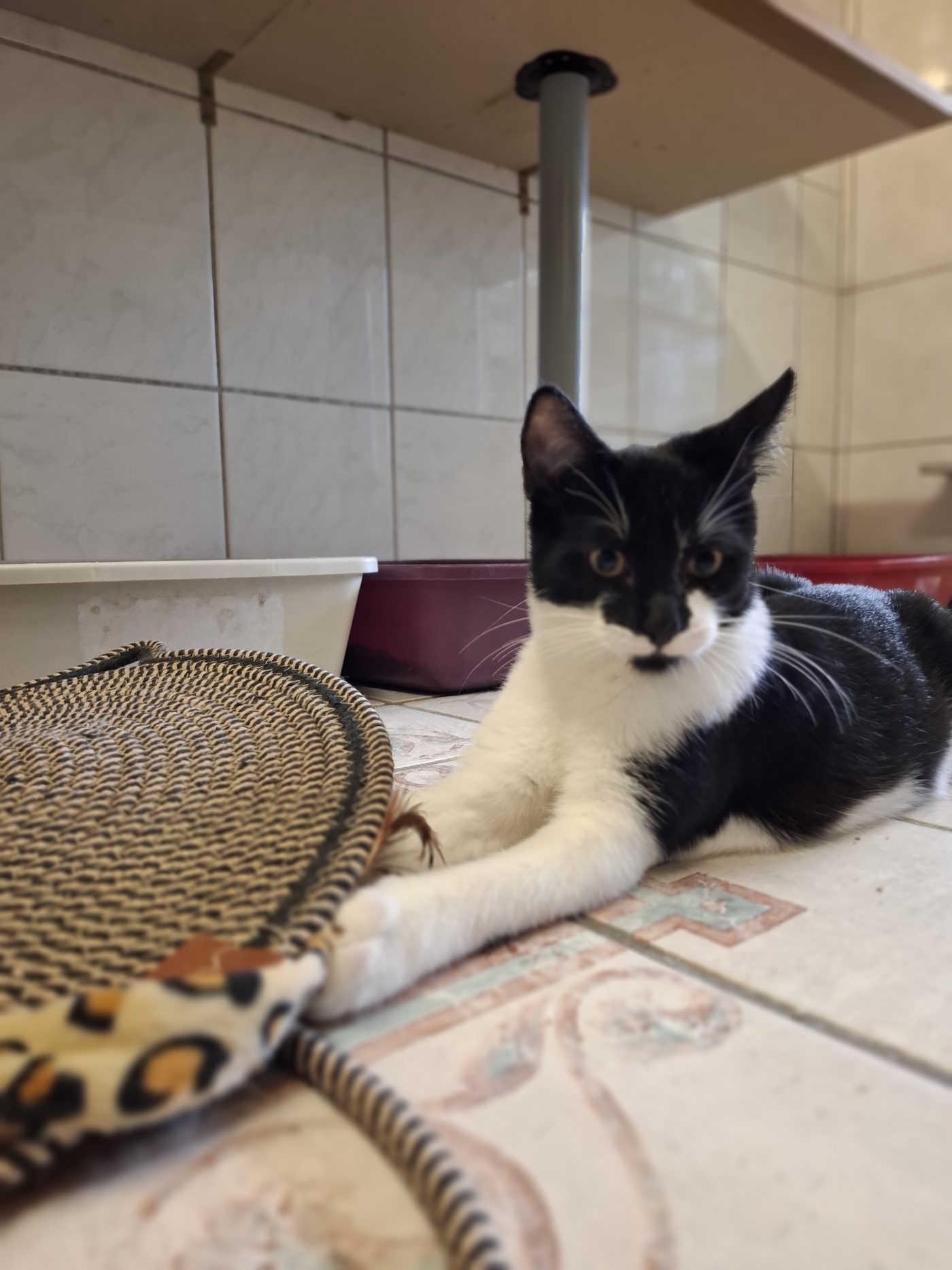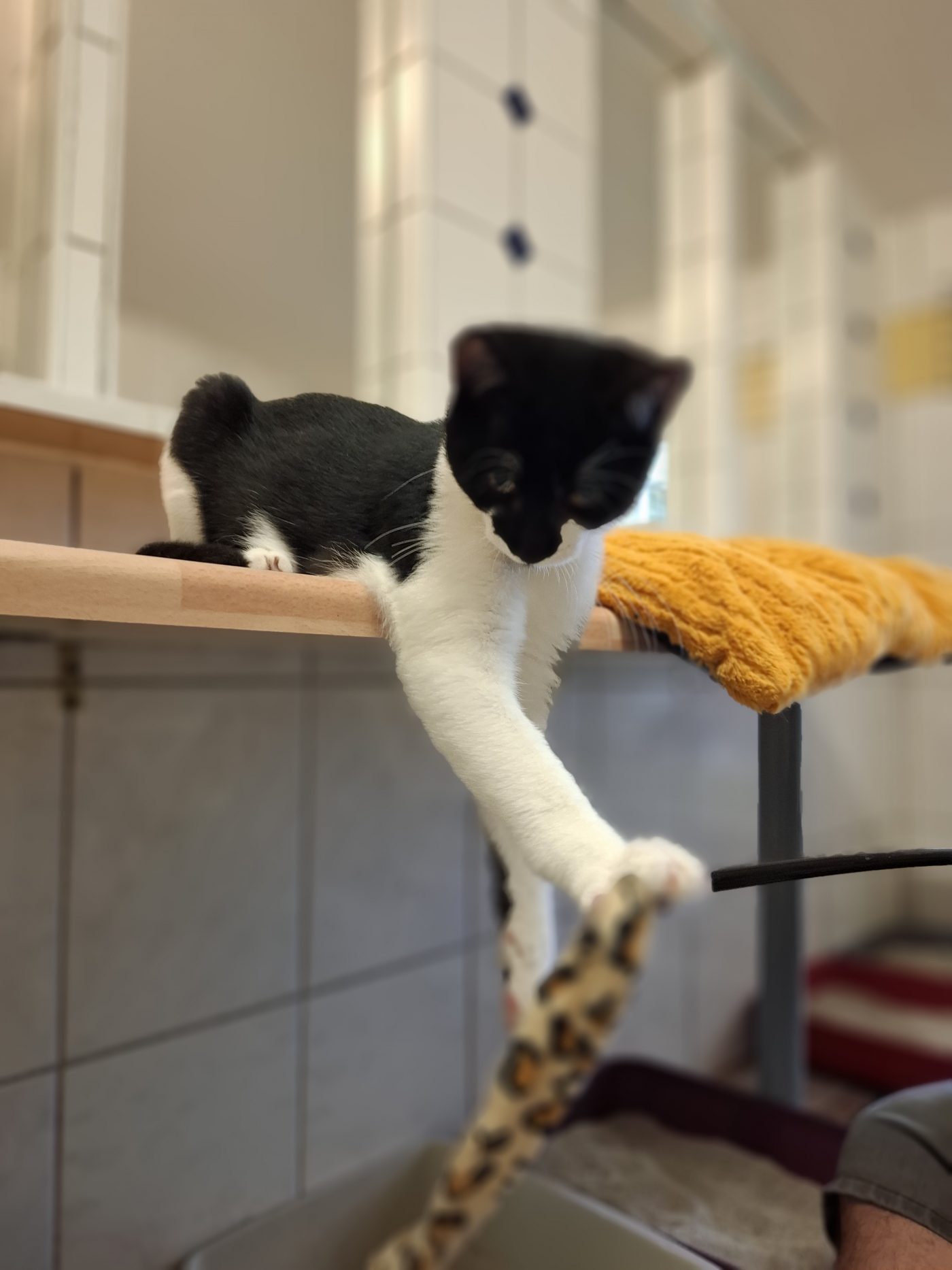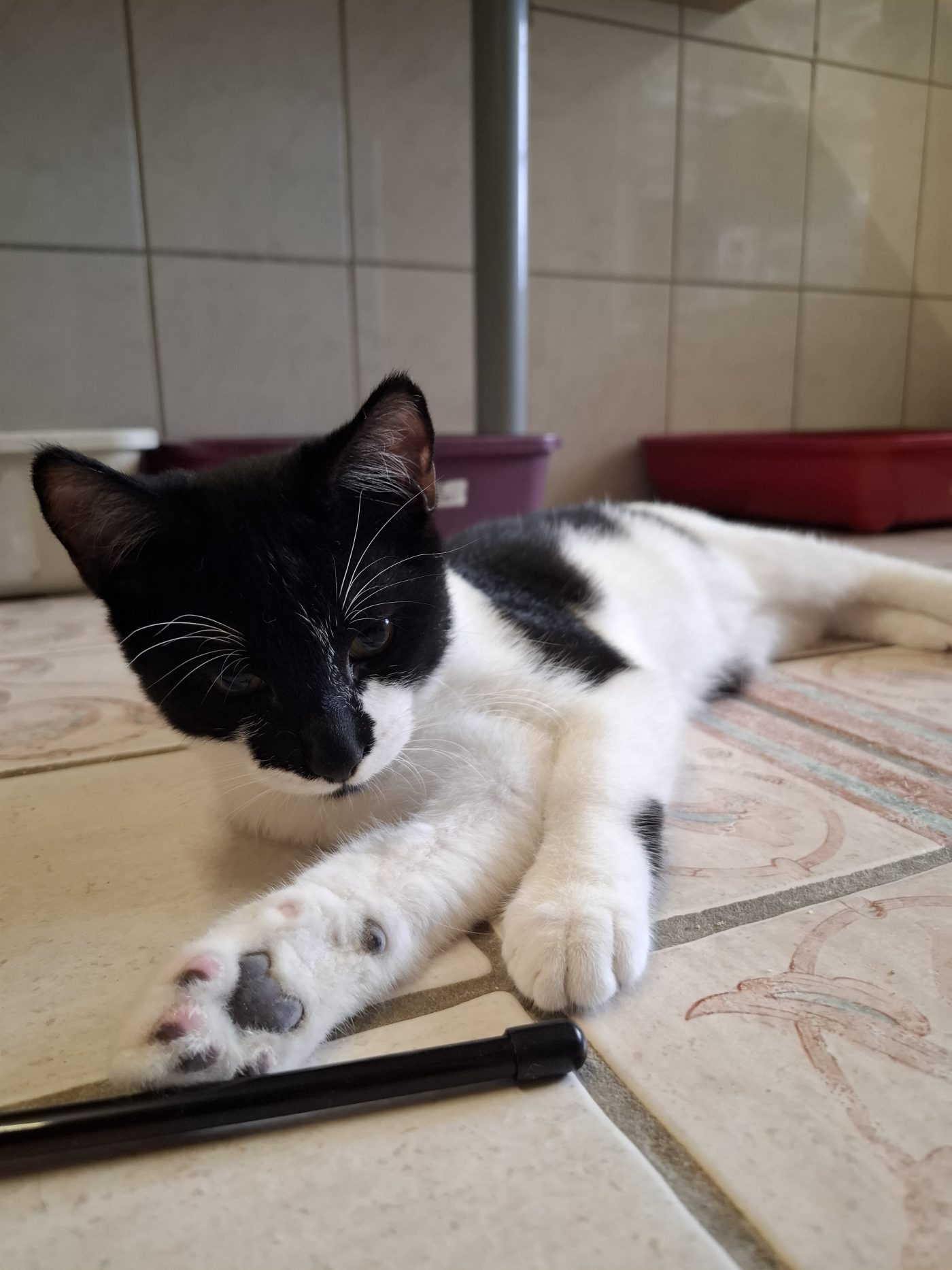 Pak Choi wartet immer noch auf sein Für immer-Zuhause, völlig unverständlich für uns. Er verträgt sich im Gruppenzimmer super mit allen anderen, scheint eine besondere Verbindung mit Nigiri zu haben (die beiden könnten fast Zwillinge sein), ist aufgeschlossen, freundlich, neugierig und natürlich verspielt. Fotos von ihm zu machen ist super einfach, der bildhübsche Kater ist das perfekte Samtpfotenmodell.