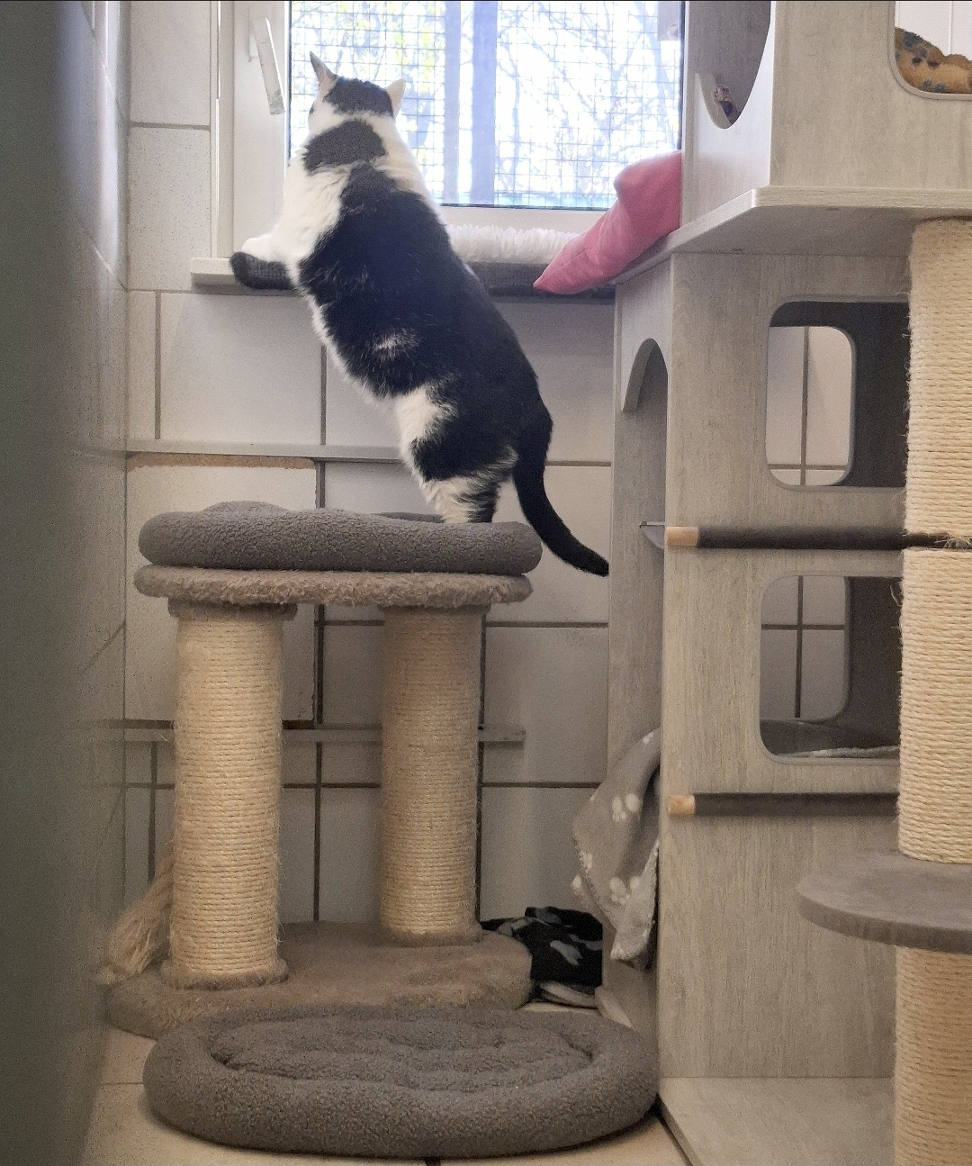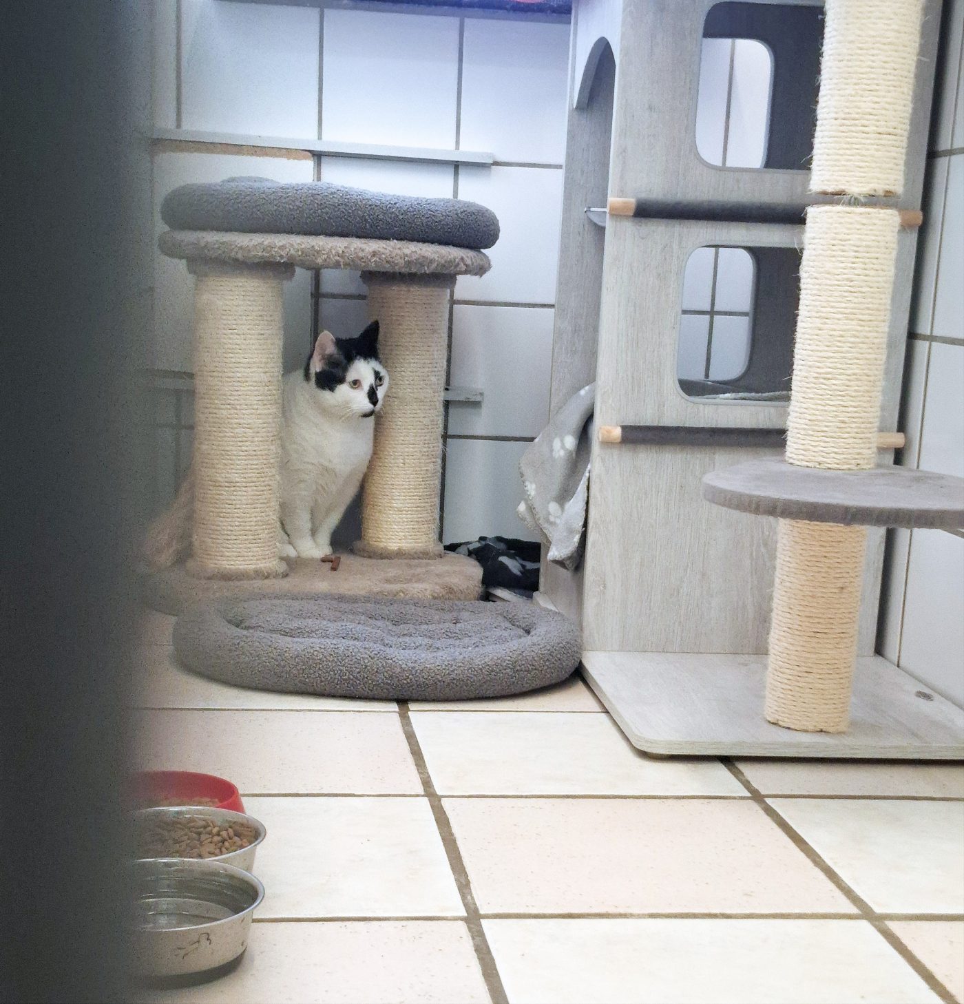 Sie ist noch unsicher mit der Situation, taut aber langsam auf. Luna war immer Wohnungskatze, ihr Besitzer verstarb leider, und sie wurde innerhalb der Familie aufgenommen. Seit Juli lebte sie bei einem Ehepaar, wurde aber ab einem bestimmten Zeitpunkt der Frau gegenüber immer aggressiver, vielleicht hat sie sich erschrocken o.ä. Luna soll mit Frauen grundsätzlich kein Problem haben sagte uns der Mann, da auch die Tochter mit im Haus lebe und es mit ihr keine Probleme gebe. Sie zeigt sich nach ein paar Tagen bei uns schon aufgeschlossener, lässt sich aber noch nicht anfassen.